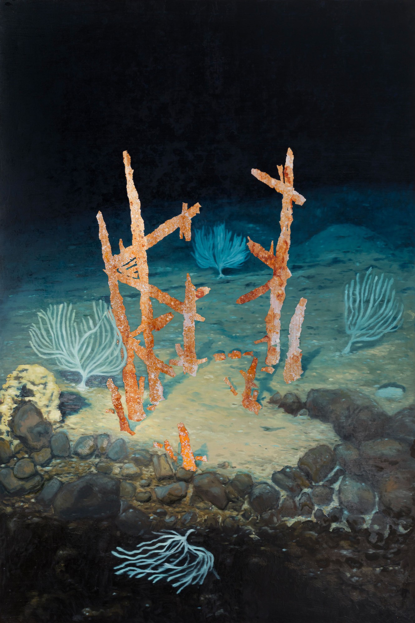 Deep depths perspective, Huile sur acier oxydé, 70 × 100 cm, 2023