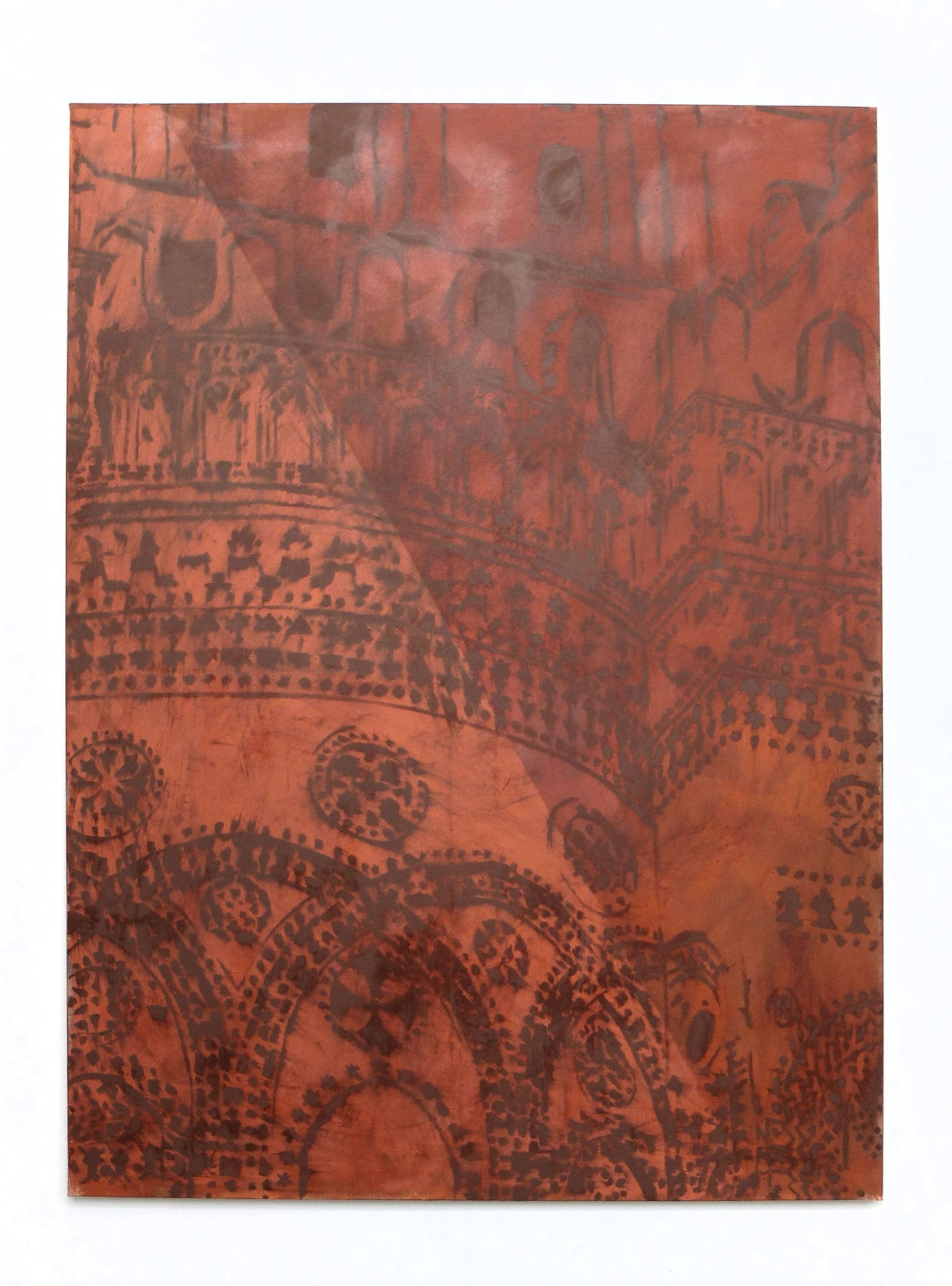 Au fil des séries, un corpus d’images récurrentes se déploie, fait de lieux désertés et comme sortis du temps, qui à force d’être convoqués nous deviennent familiers. Il sourd une impression de dé- jà-vu auquel nos propres souvenirs viennent s’adosser, de sorte que l’anodin devient le vecteur d’une histoire partagée, un récit qui ne cesserait jamais de s’écrire, plus vaste que nous et que Valentine Esteve, par son usage quasi-exclusif de pigments à base d’ocre ou d’argile (l’une des plus vieilles techniques connues) rattache à des origines millénaires.”