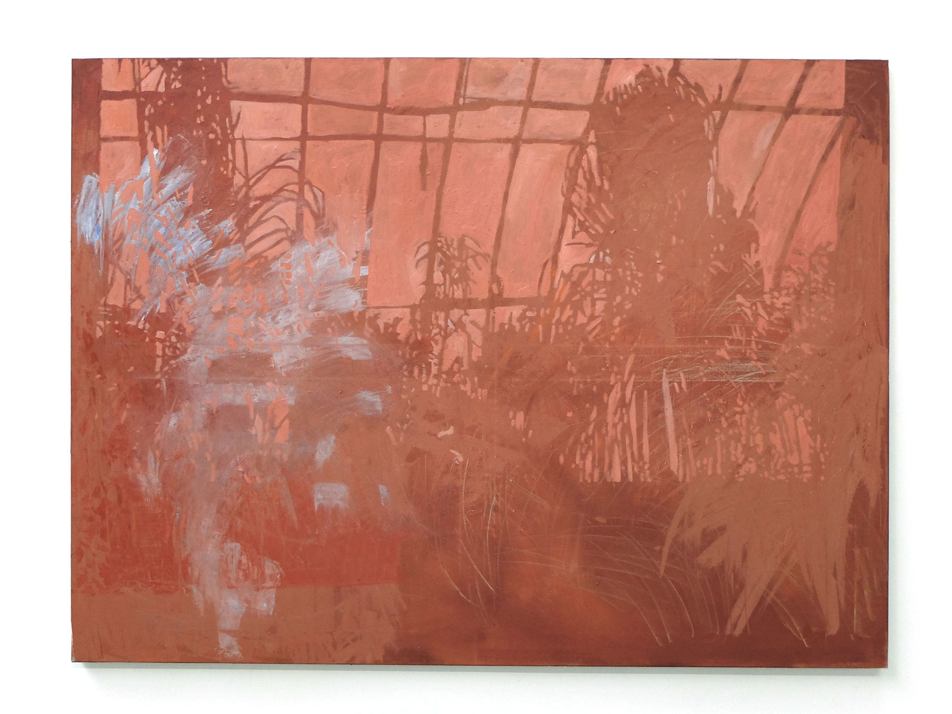 “C’est par une porte entrebâillée que Valentine Esteve nous laisse apercevoir le monde : mur ocre, nuit blanche, quelques ombres, des feuillages, les baies à contre-jour d’une serre ou d’une verrière, et chaque fois cette monochromie que tranche un rai de lumière dure. Il faut un peu de temps pour laisser les formes émerger, l’œil s’habituer. Cette peinture-là se regarde à tâtons.