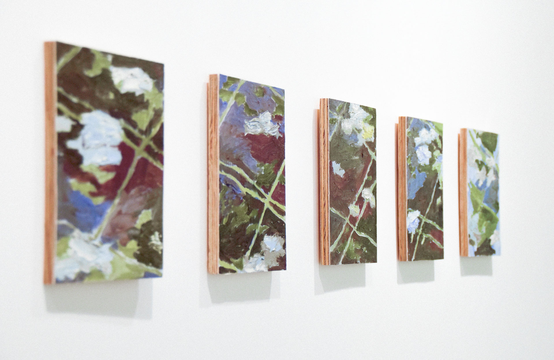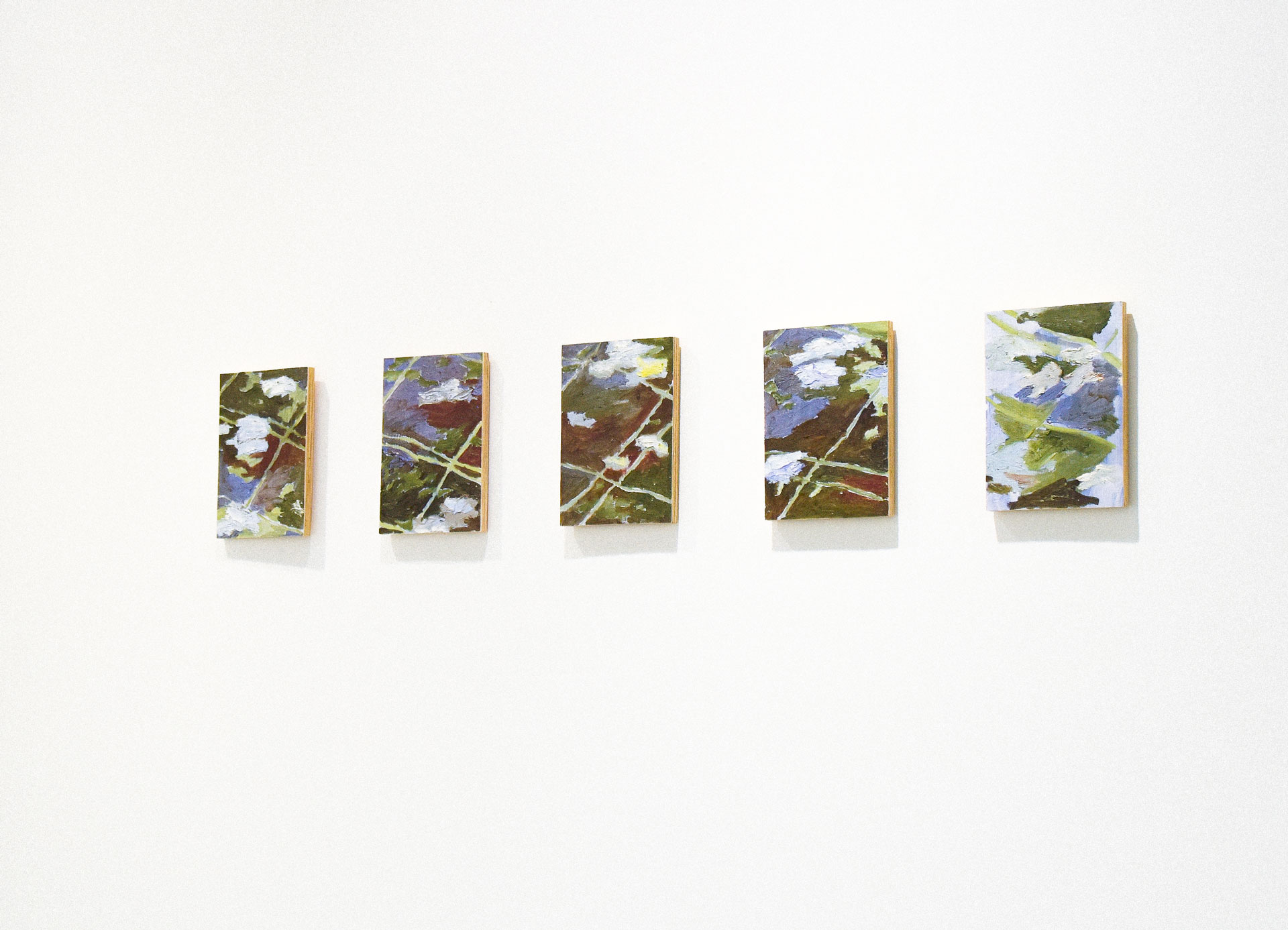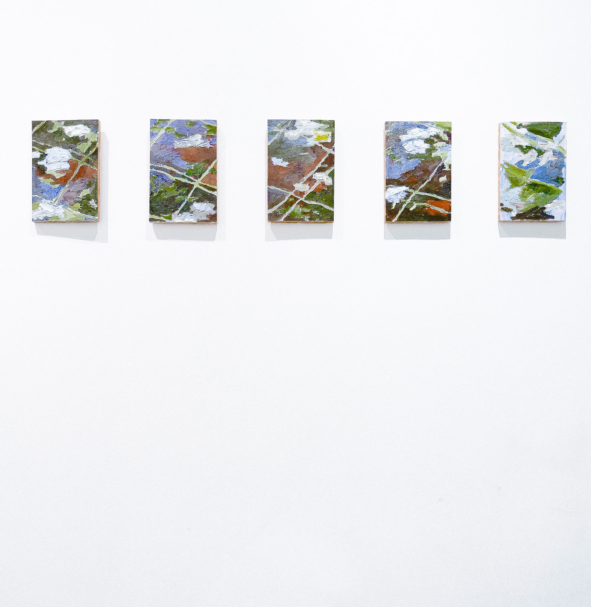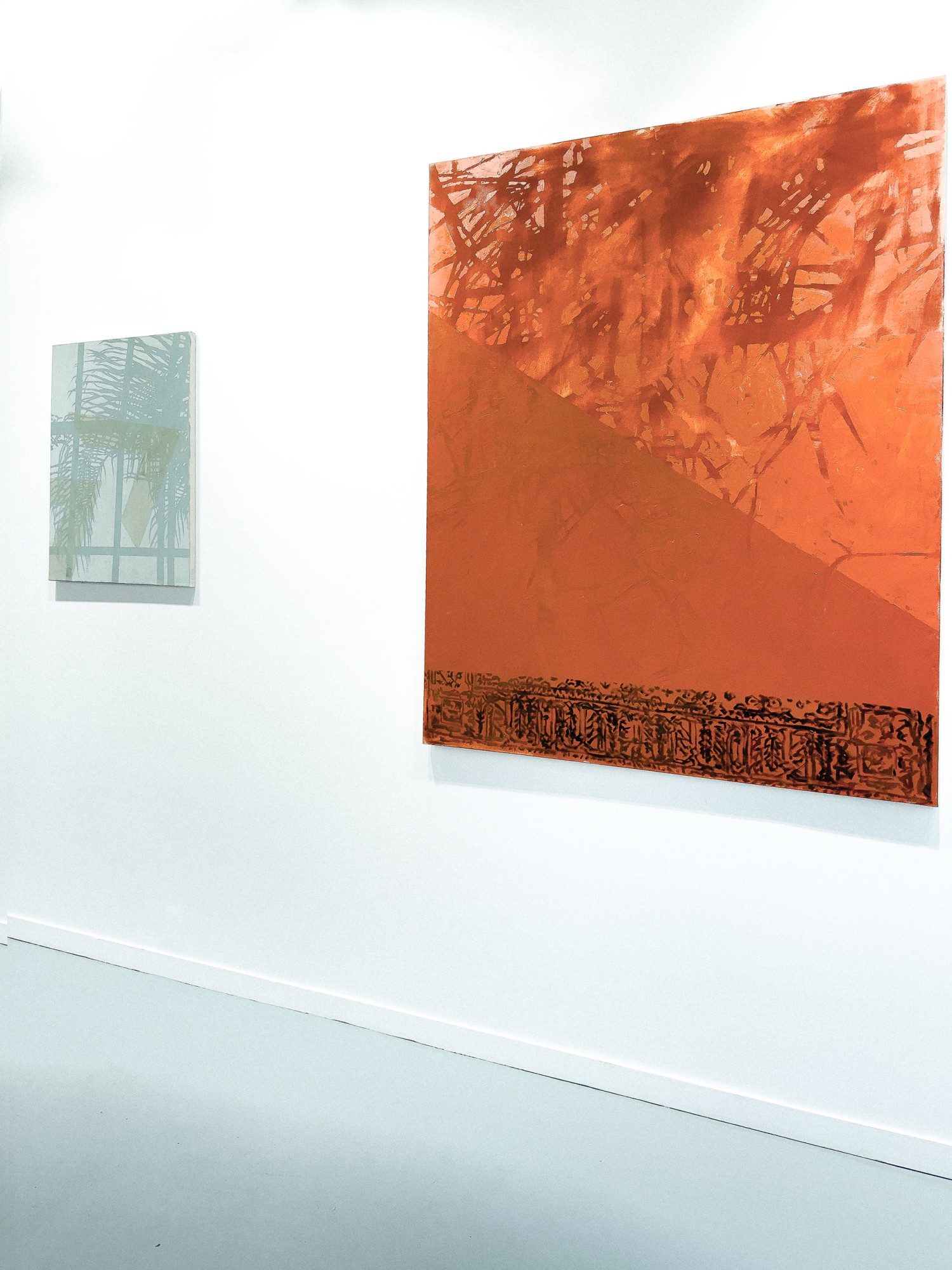 Valentine Esteve est une peintre du scintillement, de l’ombre et du halo. Ses peintures sont autant de réminiscences fantasmées d’espaces traversés, habités ou oubliés. Dans une palette de couleur extrêmement resserrée se forment d’apparents monochromes, dans une ritournelle d’éléments architecturaux, une superposition de motifs ancestraux, et de stigmates intimes à demi-effacés, produisant un faisceau d’indices menant à une narration qu’il nous resterait à compléter.