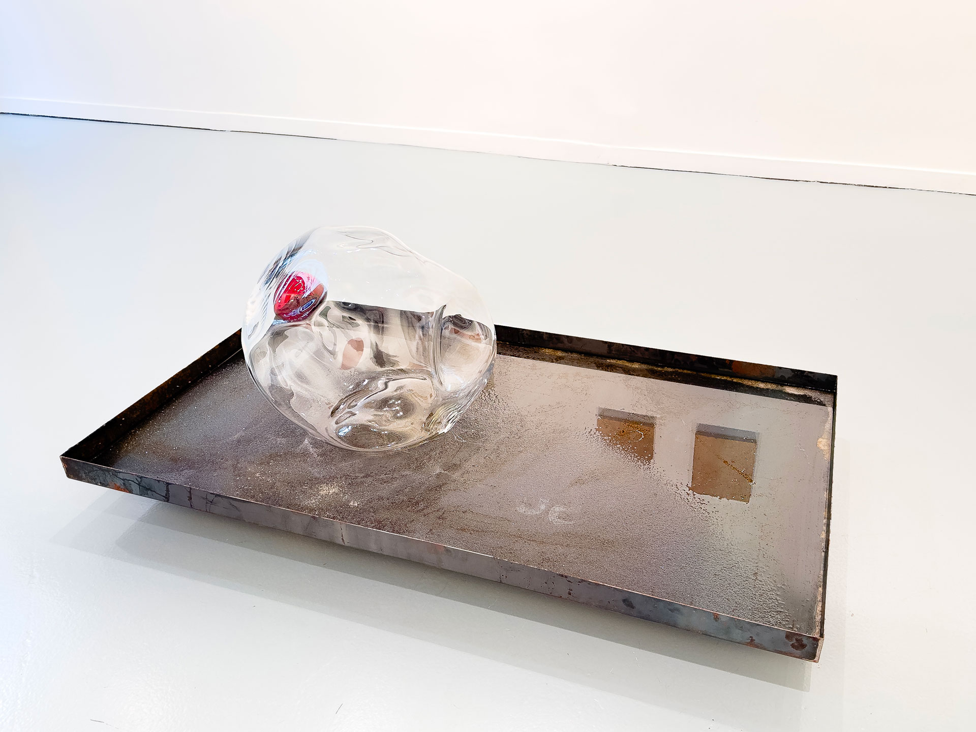 Alexia Chevrollier est une sculptrice de la matière brute. Ses œuvres sont des vestiges d’une tension affranchie. Elle collabore avec les éléments pour mieux les libérer de toute contrainte : le métal s’oxyde, le verre s’essouffle et le sucre cristallise. Ces matériaux immémoriaux ont ainsi la possibilité de s’exprimer avec poésie, tandis que les forces physiques silencieuses qui régissent notre monde poursuivent leur dérèglement entropique.
